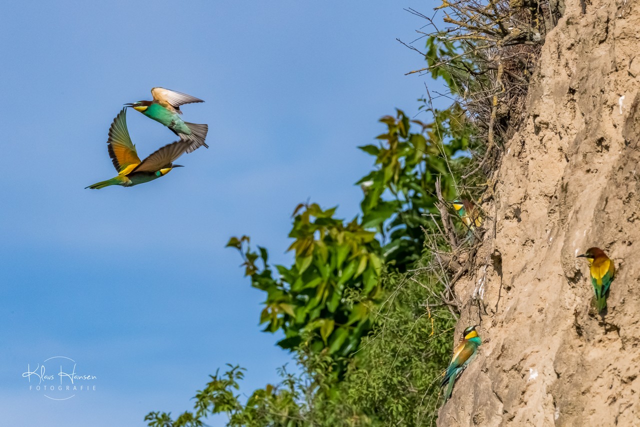 Mai 2020 Bienenfresser und Wiedehopf die am Kaiserstuhl über den Sommer kommen um ihre Jungen zu bekommen und dann im Winter wieder nach Afrika fliegen. Sie jagen Bienen, Hummel, Libellen und die Blaue Holz Biene die auch aus dem Mittelmeer hierkommt.